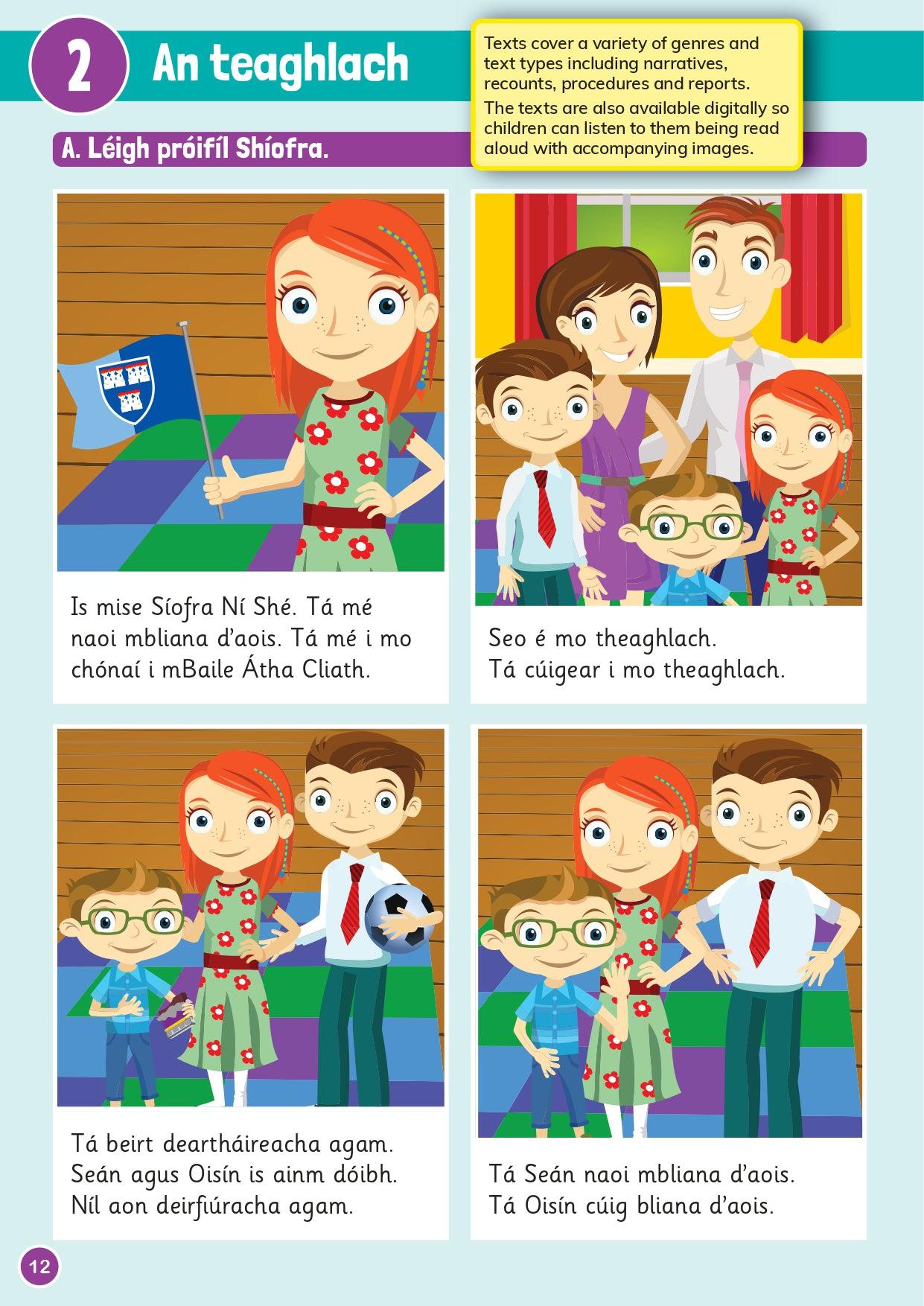 Meet Seán, Síofra and Oisín as you learn Irish in a fun way! Abair Liom is designed to meet the needs of the new integrated language curriculum. It offers a fresh, engaging approach to the teaching of Irish. The programme has print and digital resources and places a strong emphasis on the key language skills.
