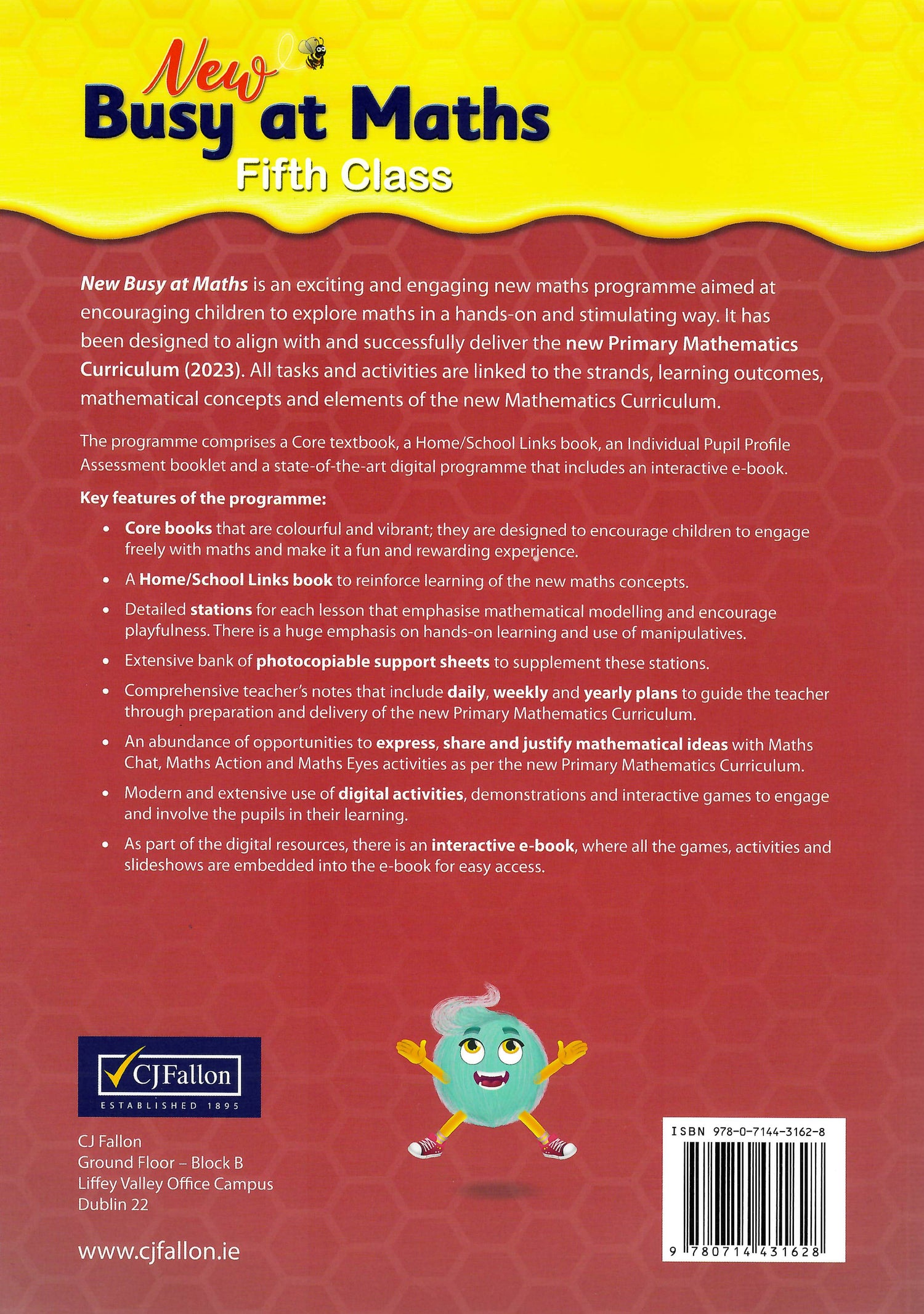 New Busy at Maths is an exciting and engaging new maths programme aimed at encouraging children to explore maths in a hands-on and stimulating way. It has been designed to align with and successfully deliver the new Primary Mathematics Curriculum (2023). All tasks and activities are linked to the strands, learning outcomes, mathematical concepts and elements of the new Mathematics Curriculum.