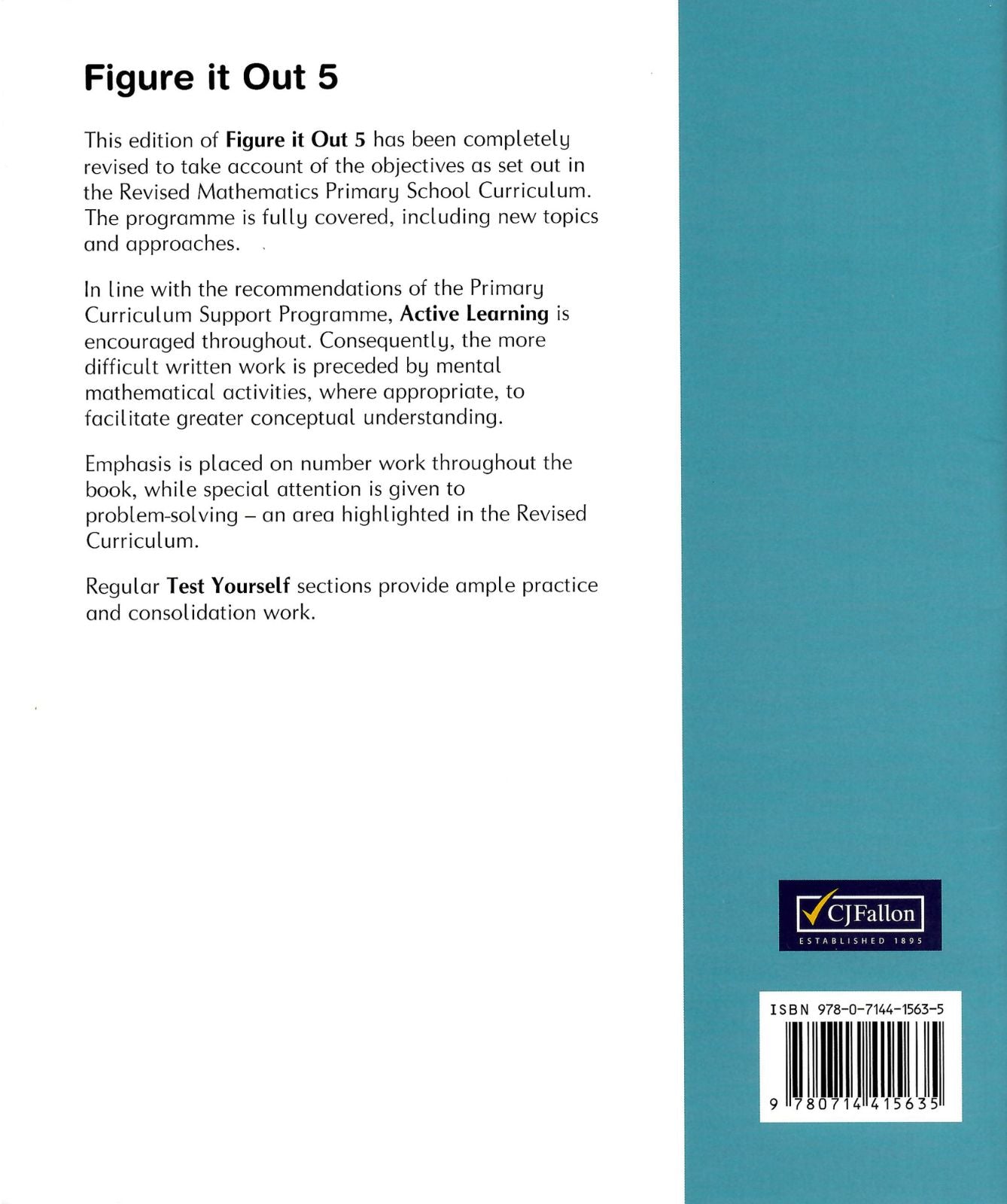 This edition of Figure it Out 5 has been completely revised to take account of the objectives as set out in the Revised Mathematics Primary School Curriculum. The programme is fully covered, including new topics and approaches.