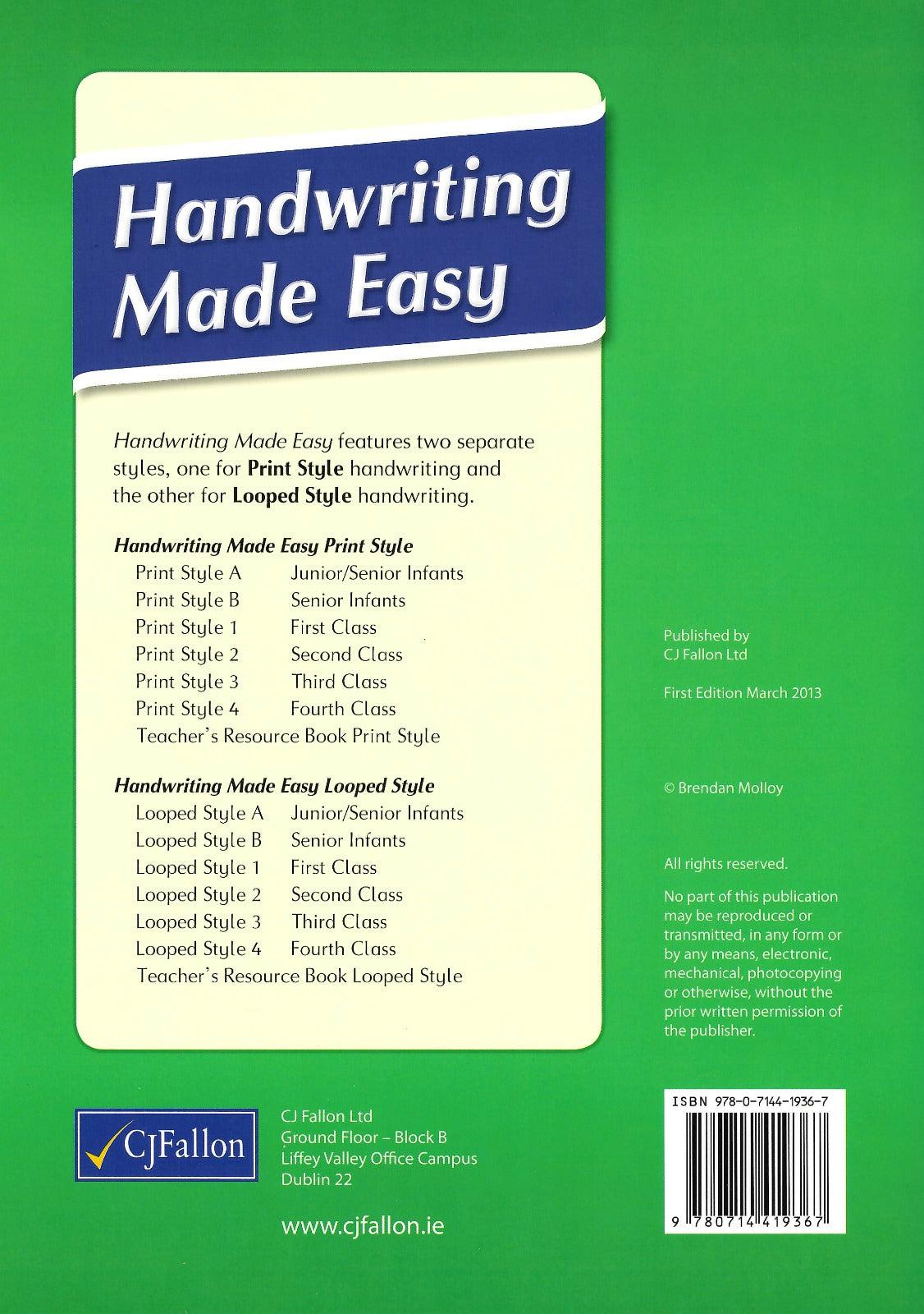 Handwriting Made Easy is an innovative new handwriting programme for primary schools. It features two separate styles, one for Print Style handwriting and the other for Looped Style handwriting. The programme runs from Junior Infants to 4th class. An extensive teacher’s resource book is available.