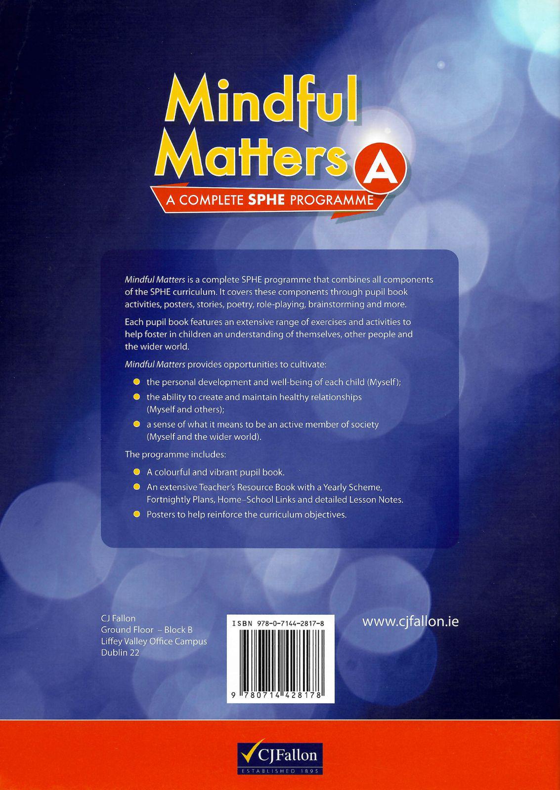 Mindful Matters is a complete SPHE programme that combines all components of the SPHE curriculum. It covers these components through pupil book activities, posters, stories, poetry, role-playing, brainstorming and more.