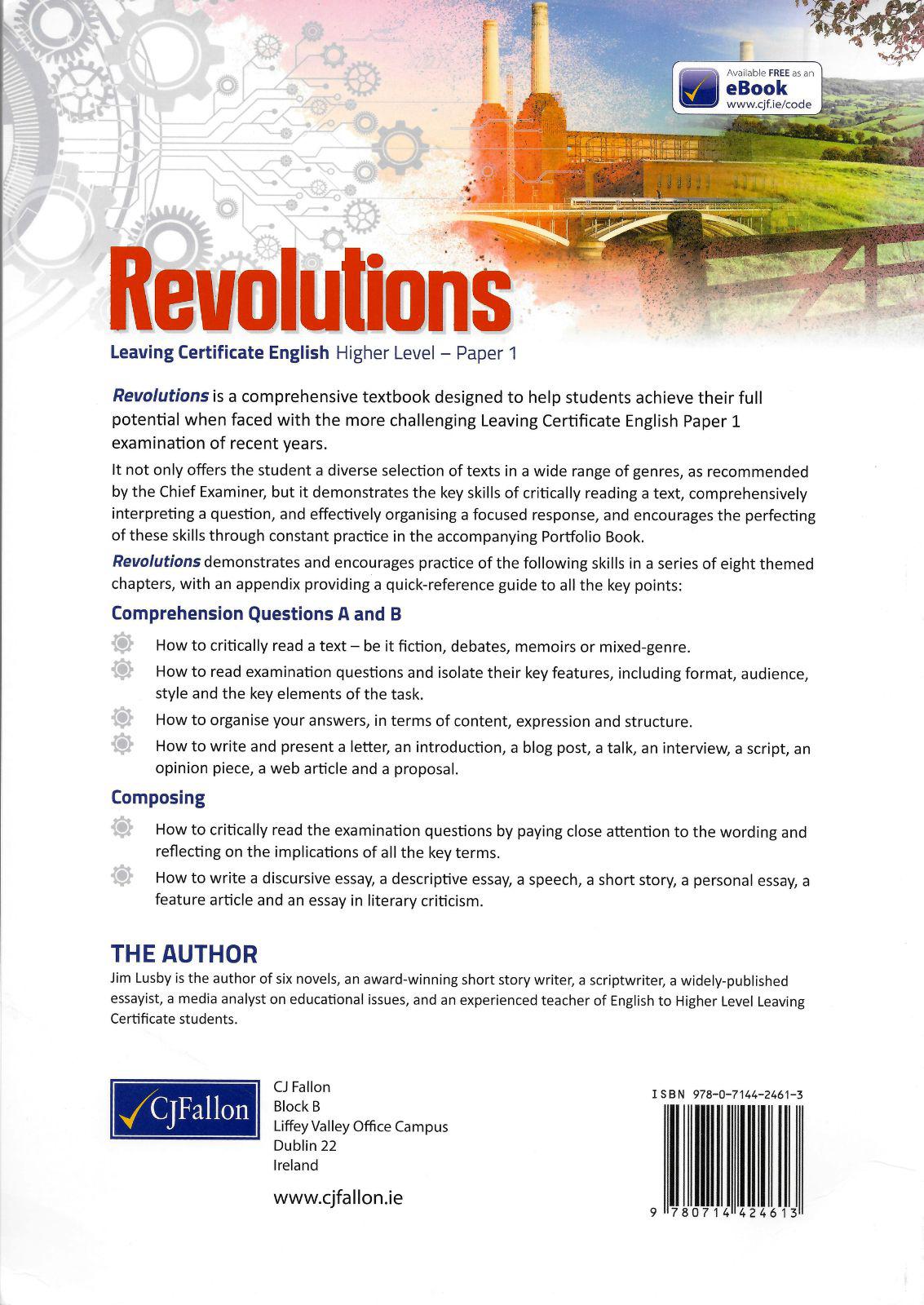 Revolutions is a new comprehensive textbook designed to help students achieve their full potential when faced with the more challenging Leaving Certificate English Paper 1 examination of recent years.