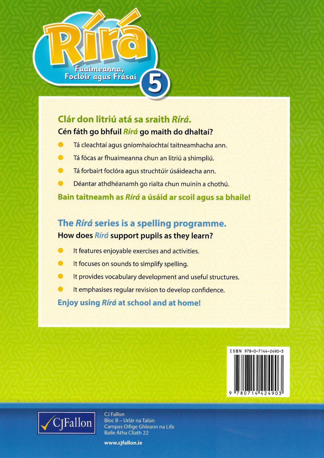 The Rírá series is an Irish spelling programme for Primary Schools. This series has a unique approach to the teaching of spellings, using a phonics model, while also providing the key vocabulary that pupils will encounter in their reading and writing.