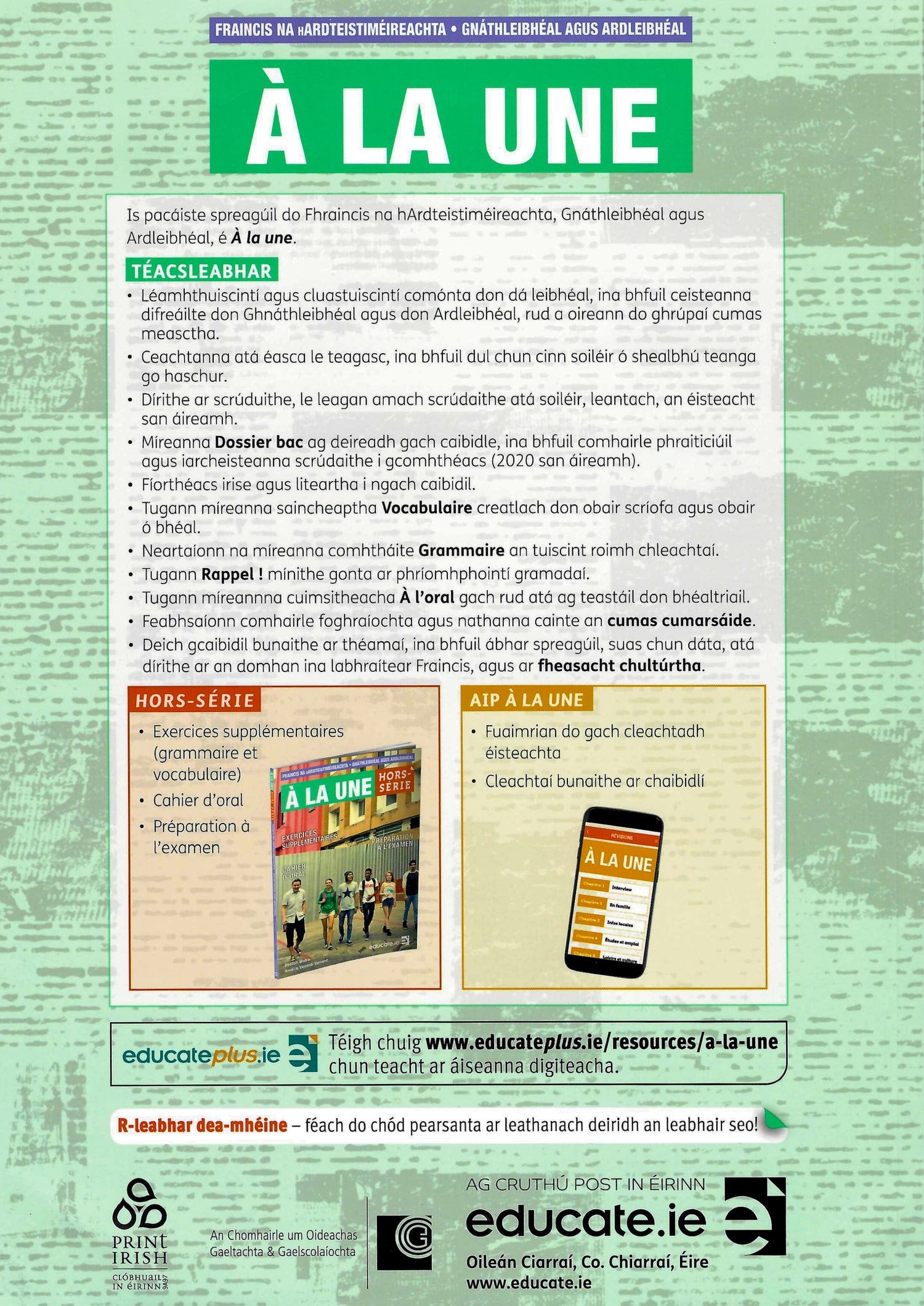 À la une is the exciting new package for Leaving Certificate French Ordinary and Higher Levels.