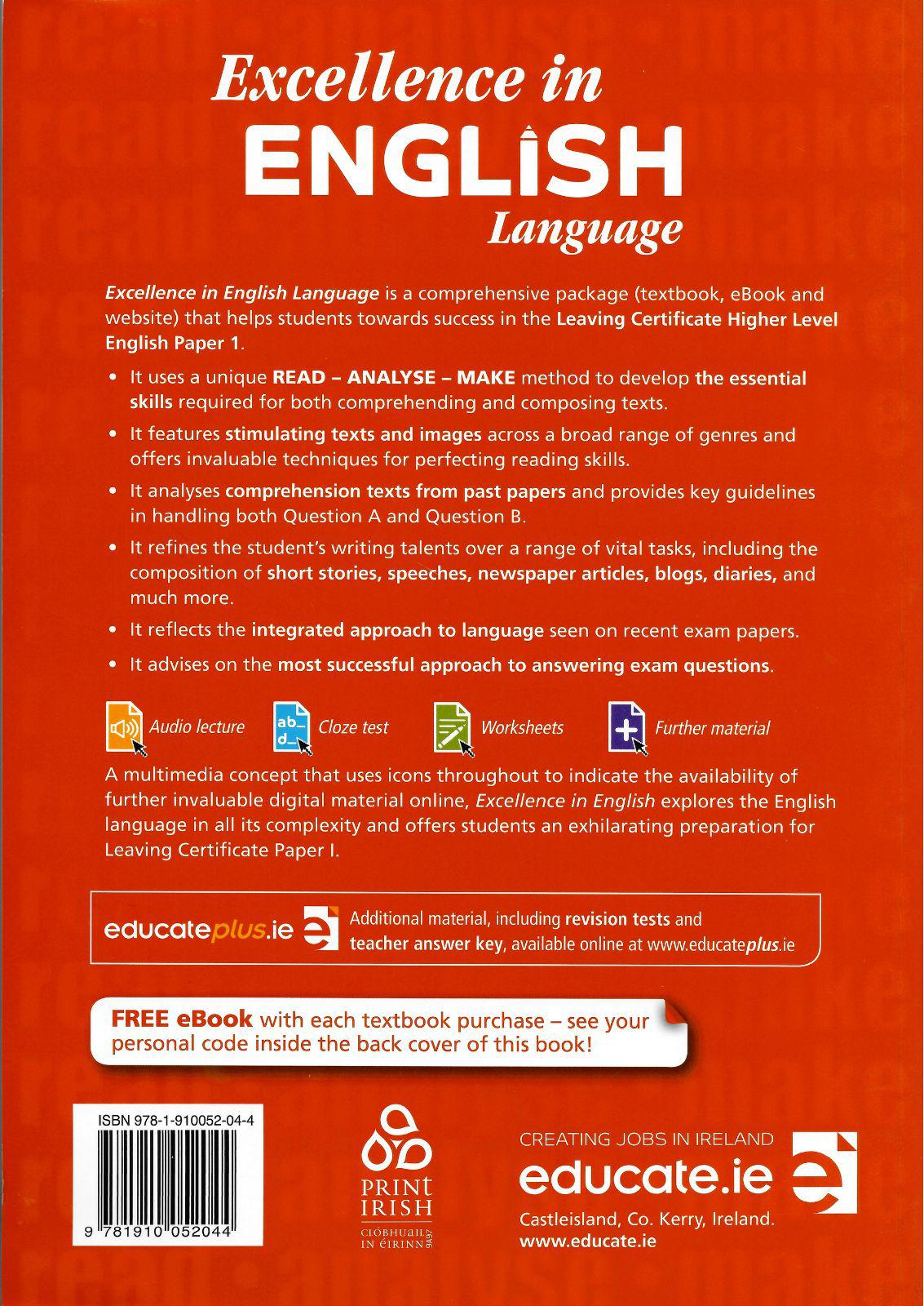 Excellence in English Language is a comprehensive textbook that helps students towards success in the Leaving Certificate Higher Level English Paper 1.