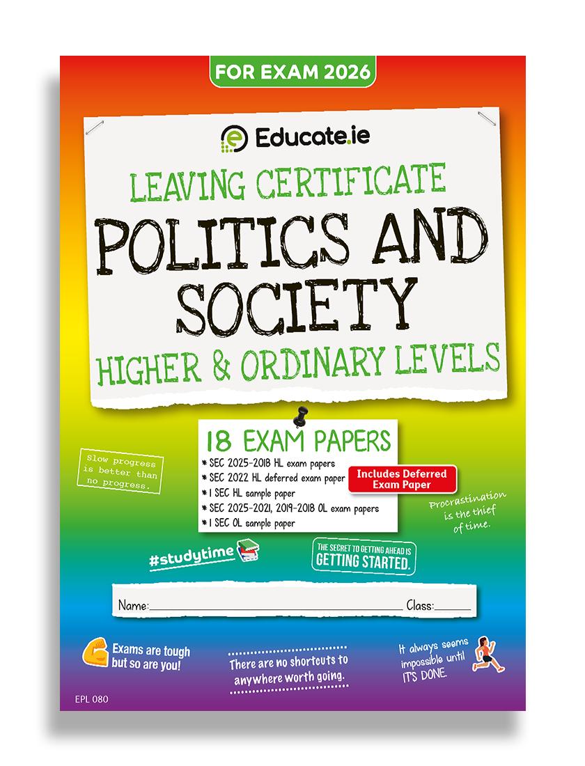 Educate.ie - Exam Papers - Leaving Cert - Politics and Society - Higher & Ordinary Level - Exam 2026 is available to BACKORDER. If you order this item now, your full order will only ship when this item is received into stock.