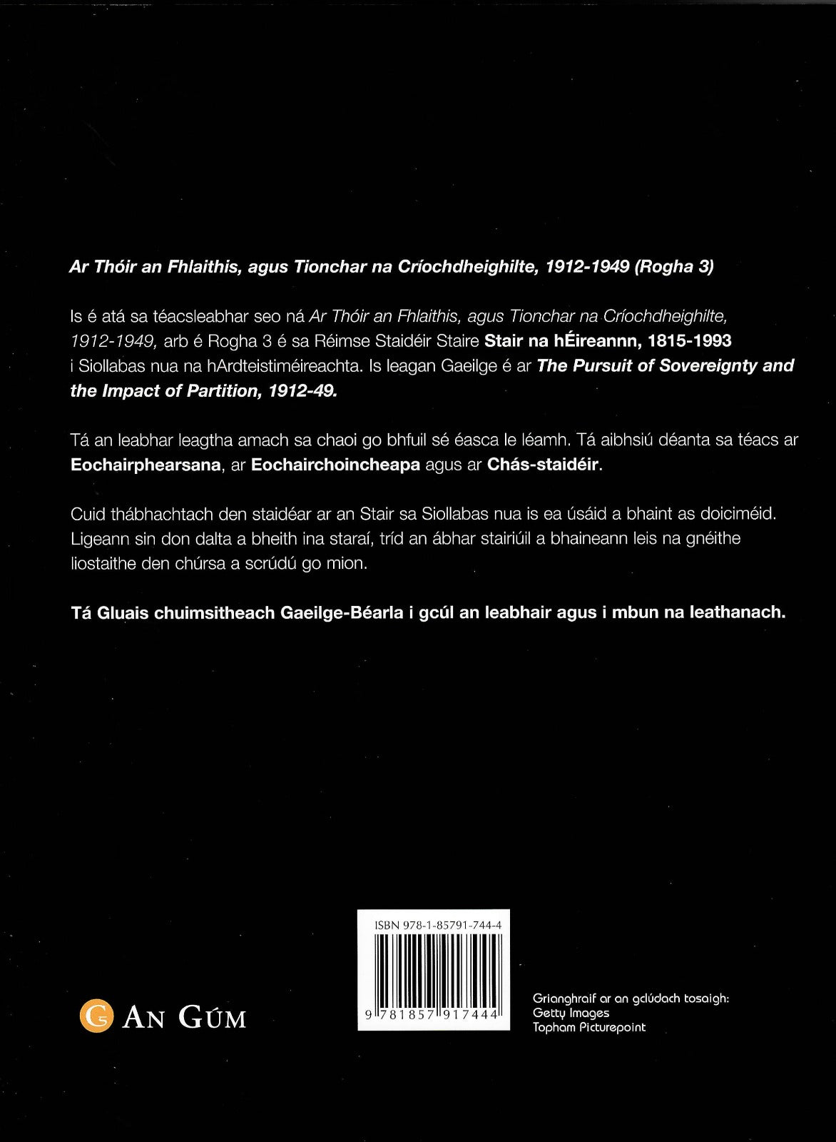 Is é atá sa téacsleabhar seo ná Ar Thóir an Fhlaithis, agus Tionchar na Críochdheighilte, 1912-1949, arb é Rogha 3 é sa Réimse Staidéir Stair na hÉireann, 1815-1993 i Siollabas nua na hArdteistiméireachta. Is leagan Gaeilge é ar The Pursuit of Sovereignty and the Impact of Partition, 1912-1949.