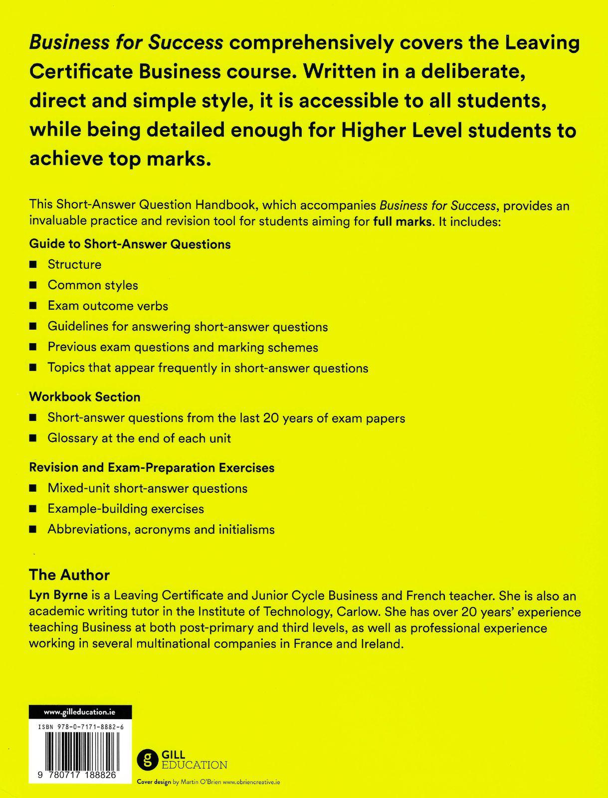 Short-Answer Question Handbook - included FREE with textbook: Contains 20 years of unit-categorised short-answer questions from Higher and Ordinary Level papers, as well as whole-syllabus revision exercises. It also contains unit glossaries, a guide to short-answer questions and an abbreviations section.