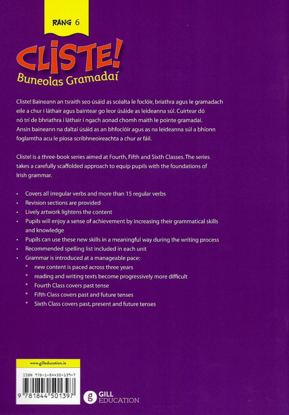 - Cliste is a three-book series aimed at Fourth, Fifth and Sixth Classes. The series takes a carefully scaffolded approach to equip pupils with the foundations of Irish grammar.