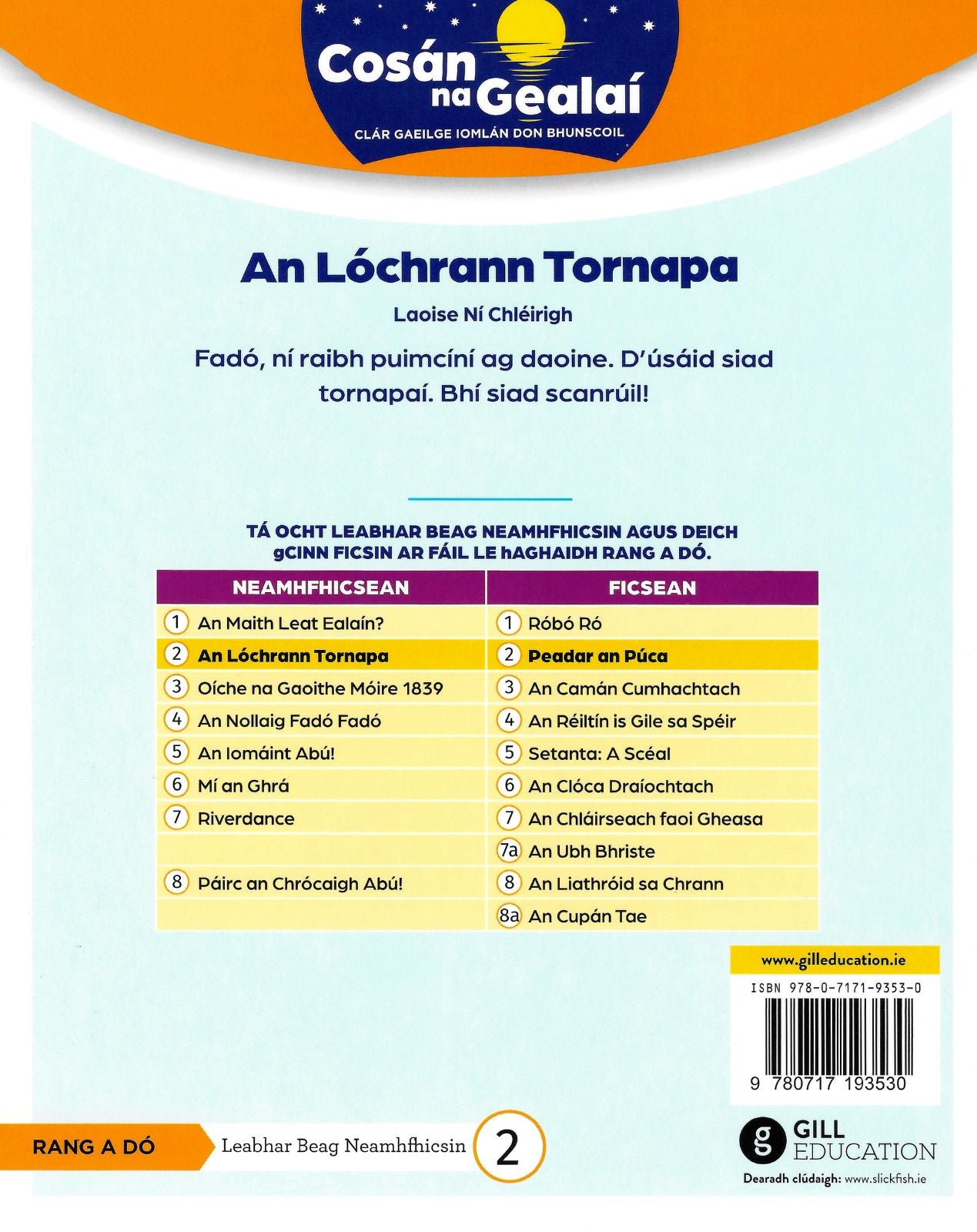 Cosán na Gealaí - An Lochrann Tornapa - 2nd Class Non-Fiction Reader 2 is available to BACKORDER. If you order this item now, your full order will only ship when this item is received into stock.