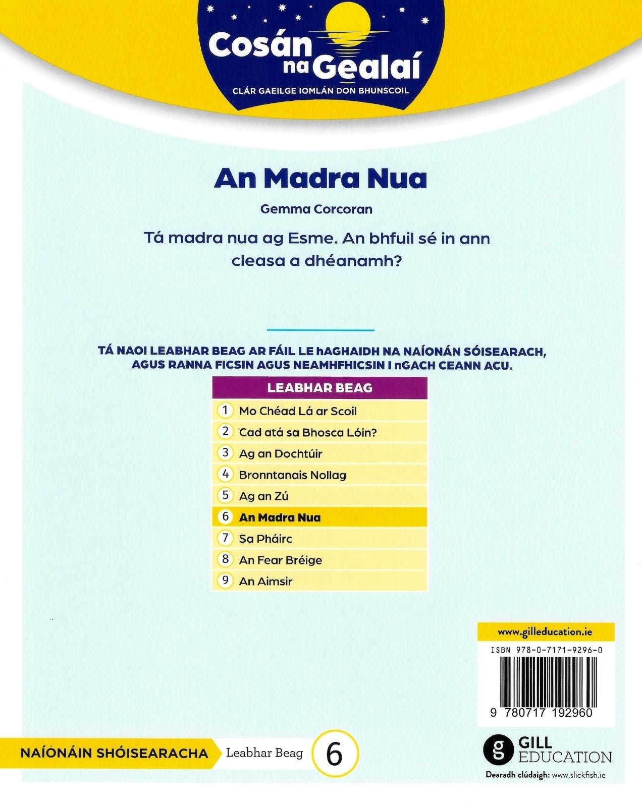 Cosán na Gealaí - An Madra Nua - Junior Infants Fiction Reader 6 is available to BACKORDER. If you order this item now, your full order will only ship when this item is received into stock.