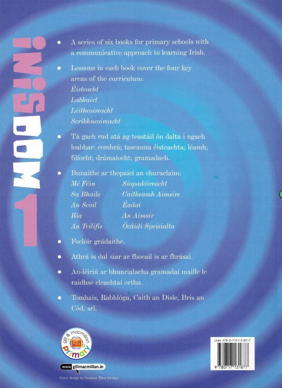 It includes everything a pupil needs in one book - comhrá; éisteacht; léamh; filíocht; drámaíocht; gramadach. Its also based on the topics of the new curriculum: Mé Féin, Siopadóireacht, Sa Bhaile, Caitheamh Aimsire, An Scoil, Éadaí, Bia, An Aimsir, An Teilifís, Ócáidí Speisialta Foclóir grádaithe: developed and expanded through the classes. Regular repetition of words and phrases. Clear explanations of grammar with back-up exercises. Emphasis on what is 'achievable' with graded, manageable tasks. Fun exercises included - Tomhais, Rabhlóga, Caith an Dísle, Bris an Cód.