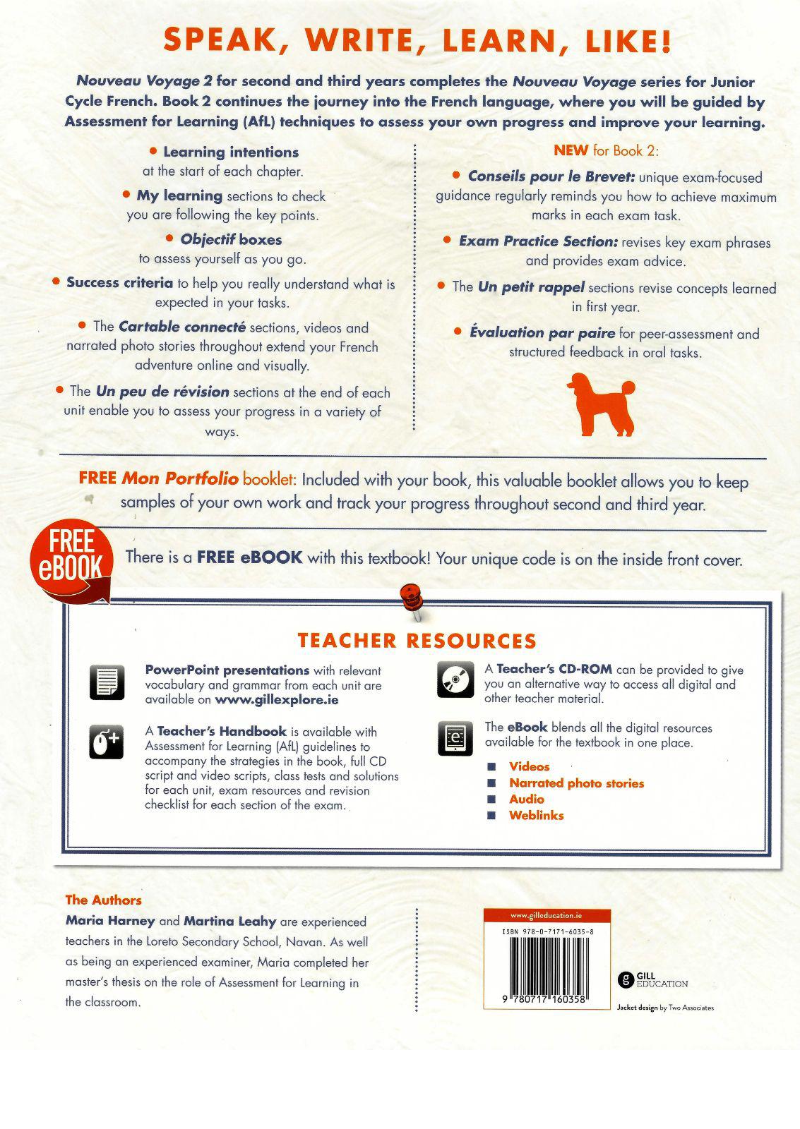 Nouveau Voyage 2 for second and third years completes the Nouveau Voyage series for Junior Cycle French. Book 2 continues the journey into the French language, where you will be guided by Assessment for Learning (AfL) techniques to assess your own progress and improve your learning.