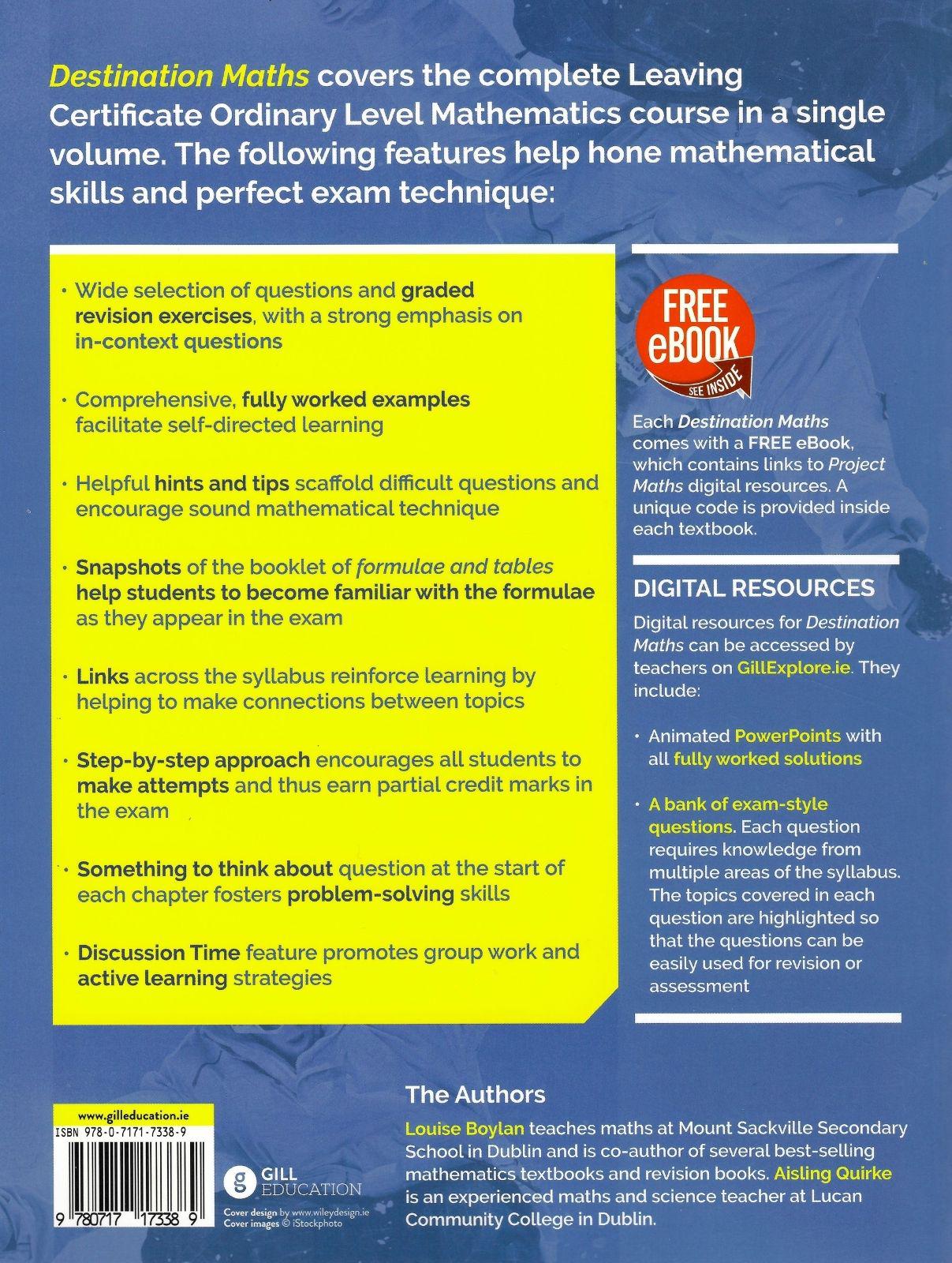 Destination Maths covers the complete Leaving Certificate Ordinary Level Mathematics course in a single-volume. The following features help hone mathematical skills and perfect exam technique: