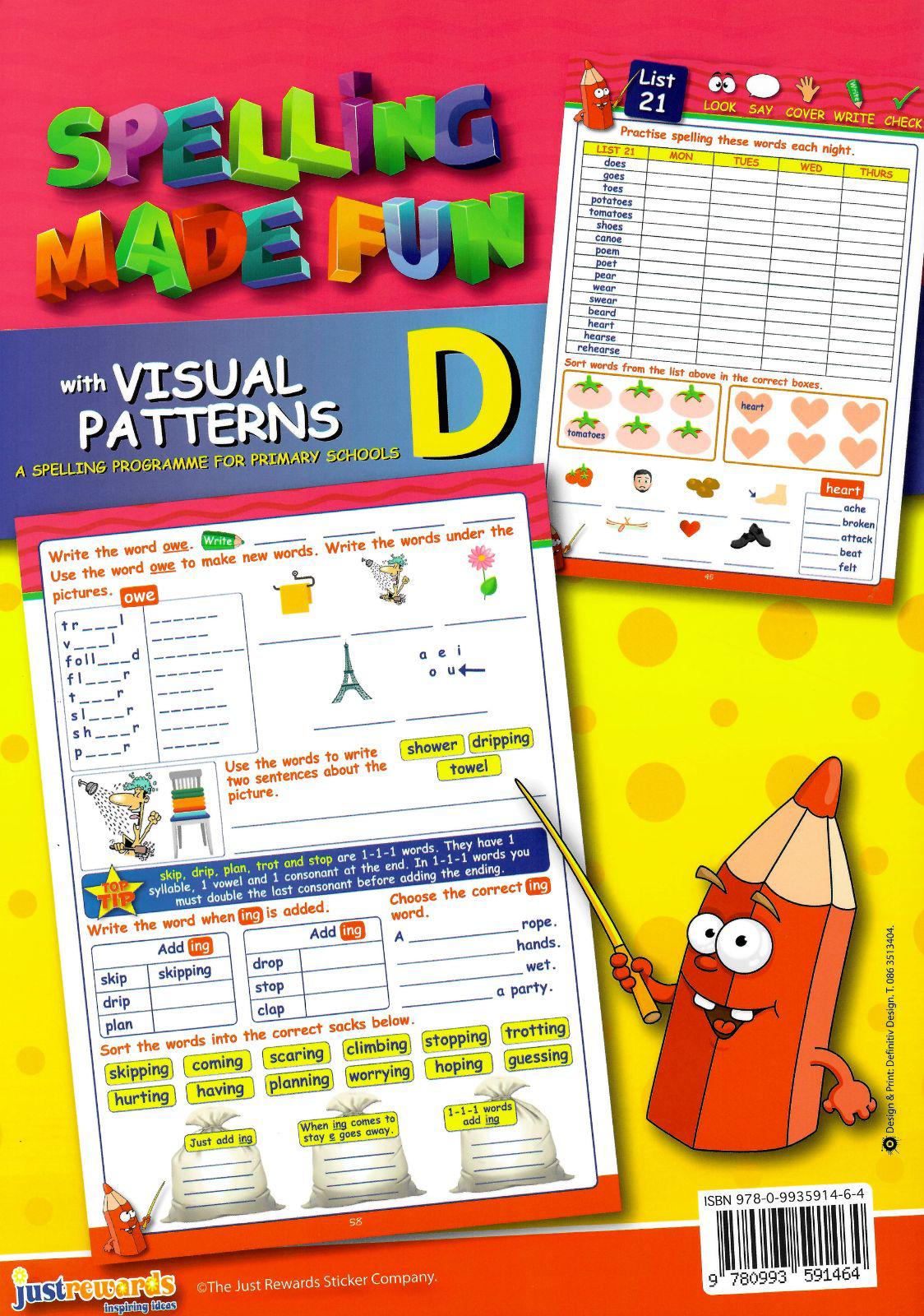 Spelling Made Fun is a new and innovative fun, multi-sensory spelling programme developed specifically for Irish Primary schools and has been extensively reviewed by practising teachers nationwide. Workbook D is suitable for 3rd Class. Features: - 32 weekly units of work with 16 spellings in each unit . Each unit has 2 pages of fun activities to reinforce the spelling .