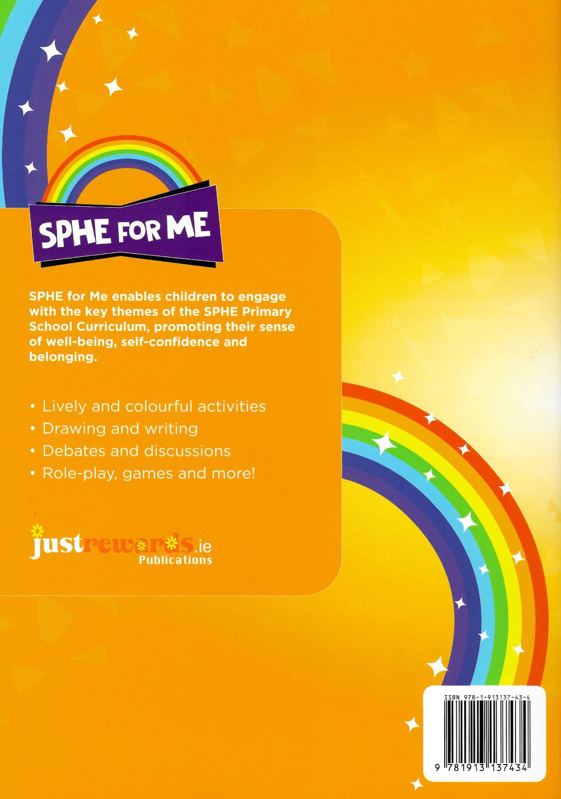 SPHE for Me is a comprehensive and creative programme mapped to the SPHE Primary School Curriculum. It offers a range of learning experiences, including role-play, debates and discussions, brainstorming sessions, co-operative games and research tasks. Every activity is also accompanied by a colourful workbook page to provide children with opportunities to respond to the key themes and issues.