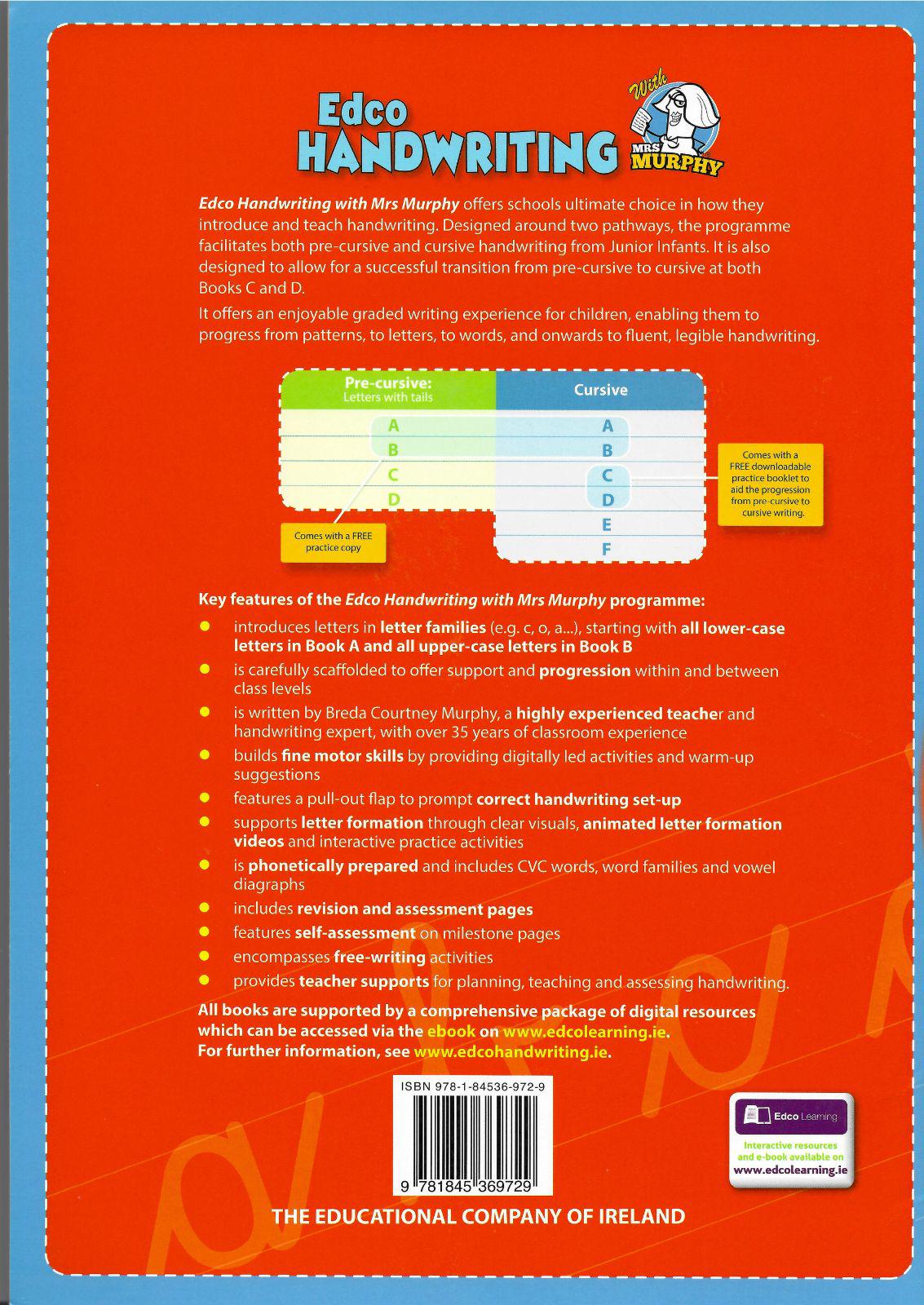 Written by Breda Courtney Murphy, creator of the highly popular Mrs Murphy’s Copies, Edco Handwriting with Mrs Murphy offers an enjoyable graded writing experience for children, enabling them to progress from patterns to letters, to words, and onwards to fluent, legible handwriting.