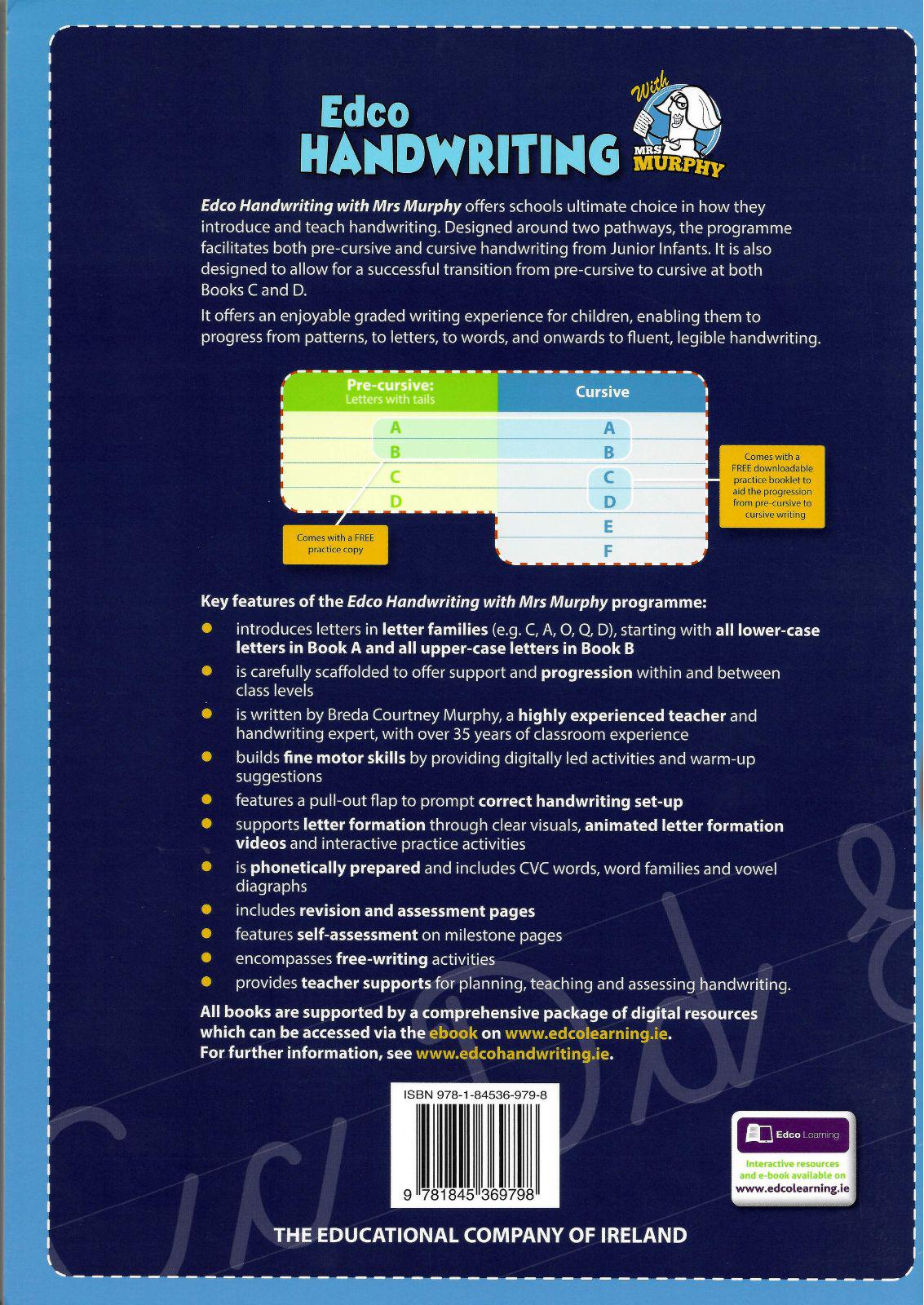 Written by Breda Courtney Murphy, creator of the highly popular Mrs Murphy’s Copies, Edco Handwriting with Mrs Murphy offers an enjoyable graded writing experience for children, enabling them to progress from patterns to letters, to words, and onwards to fluent, legible handwriting.