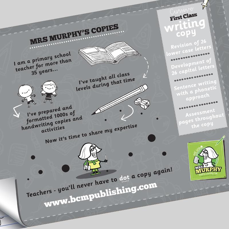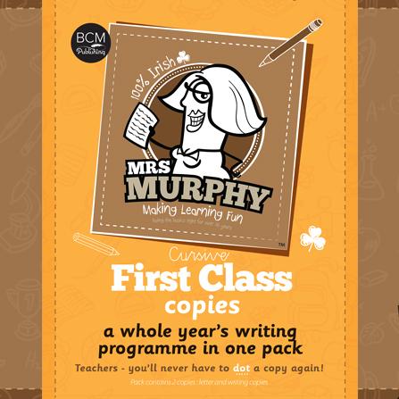 First Class - a whole year's writing in one pack. The art of handwriting hasn't changed. Mrs Murphy's copies are going back to basics. These copies will save teachers hours of preparatory work. Instructions for Good Posture, Writing and Pencil Grip on inside cover. Fully cursive copies for 3rd - 6th Classes to follow.
