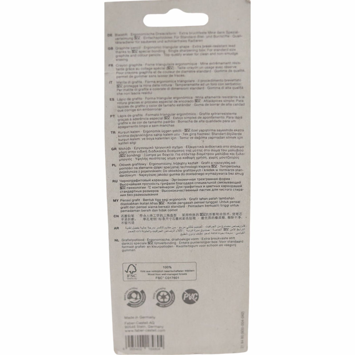 - Eraser with protective cover against dirt, PVC-free.