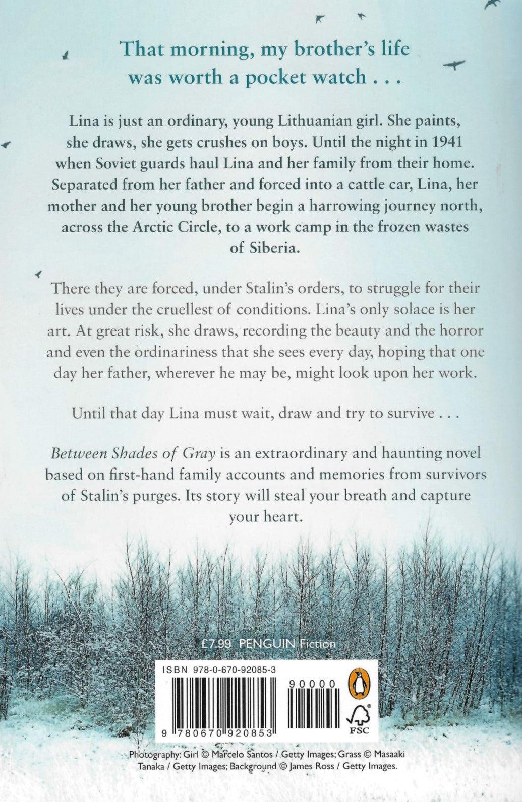 One night fifteen-year-old Lina, her mother and young brother are hauled from their home by Soviet guards, thrown into cattle cars and sent away. They are being deported to Siberia. An unimaginable and harrowing journey has begun. Lina doesn't know if she'll ever see her father or her friends again. But she refuses to give up hope.