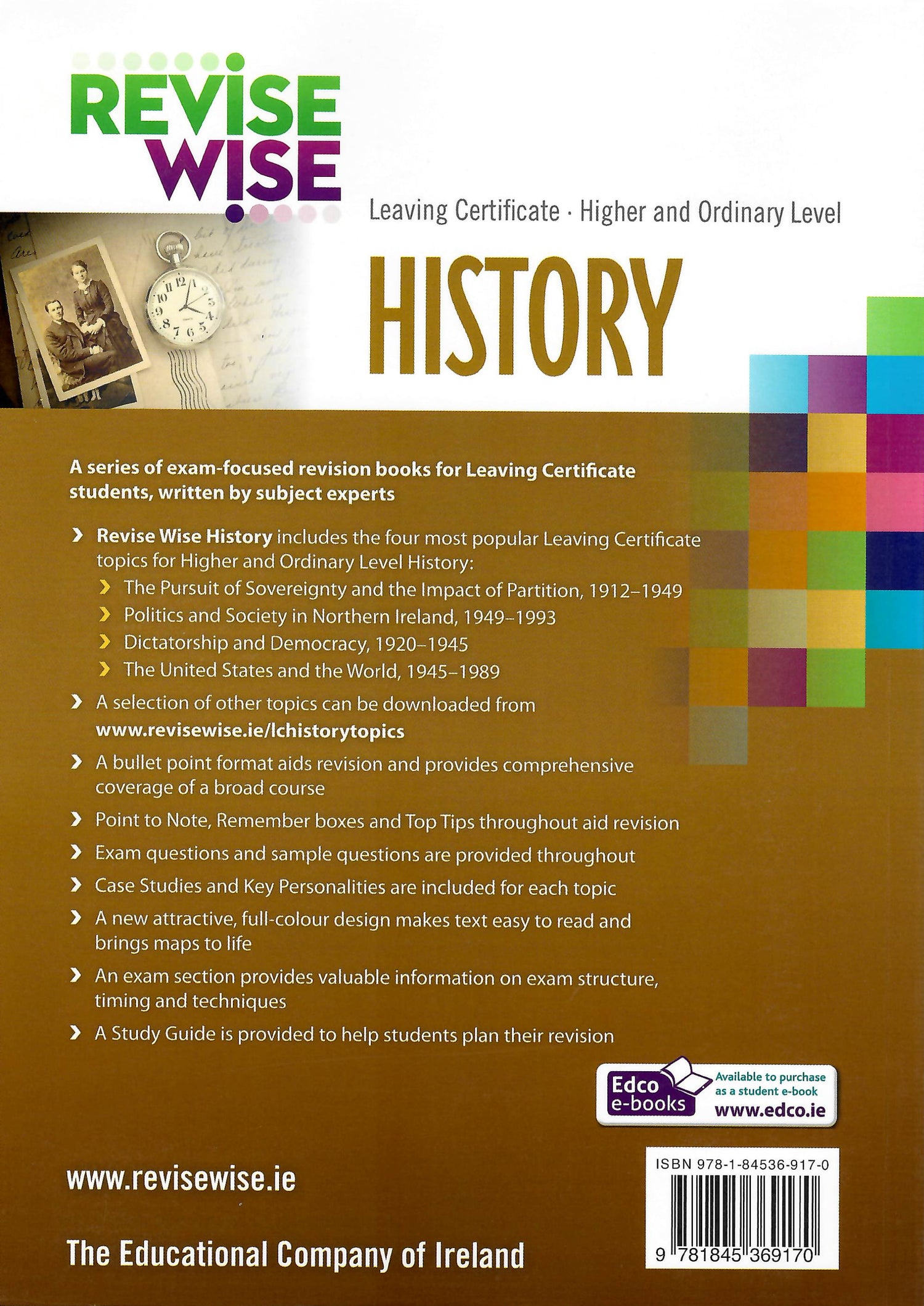 - Revise Wise History includes the four most popular Leaving Certificate topics for Higher and Ordinary Level History: