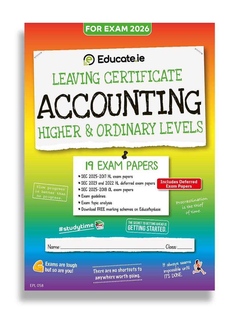Educate.ie - Exam Papers - Leaving Cert - Accounting - Higher & Ordinary Level - Exam 2026 is available to BACKORDER. If you order this item now, your full order will only ship when this item is received into stock.
