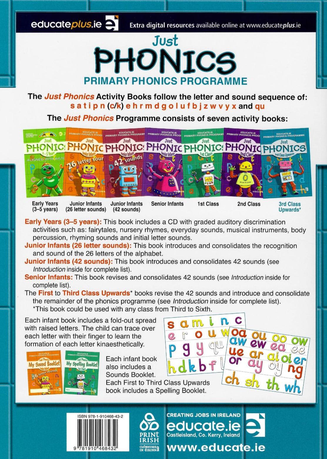 The 1st-3rd Class books in the Just Phonics series revise the 42 sounds and introduce and consolidate the remainder of the phonics programme.