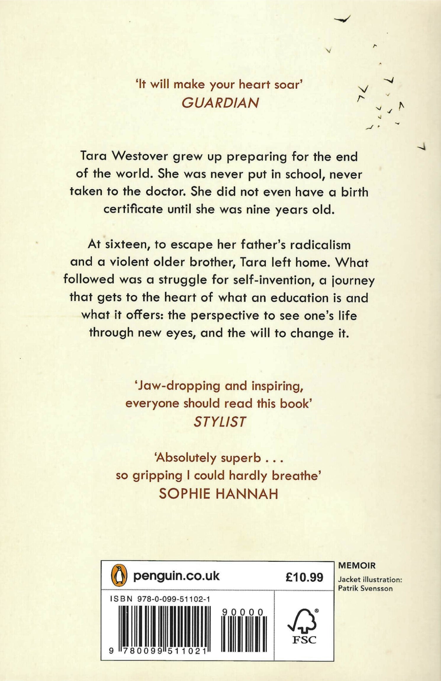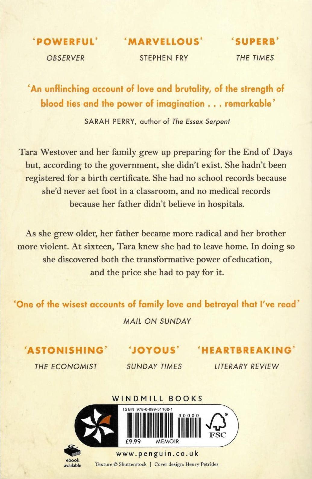 Tara Westover and her family grew up preparing for the End of Days but, according to the government, she didn’t exist. She hadn’t been registered for a birth certificate. She had no school records because she’d never set foot in a classroom, and no medical records because her father didn’t believe in hospitals.