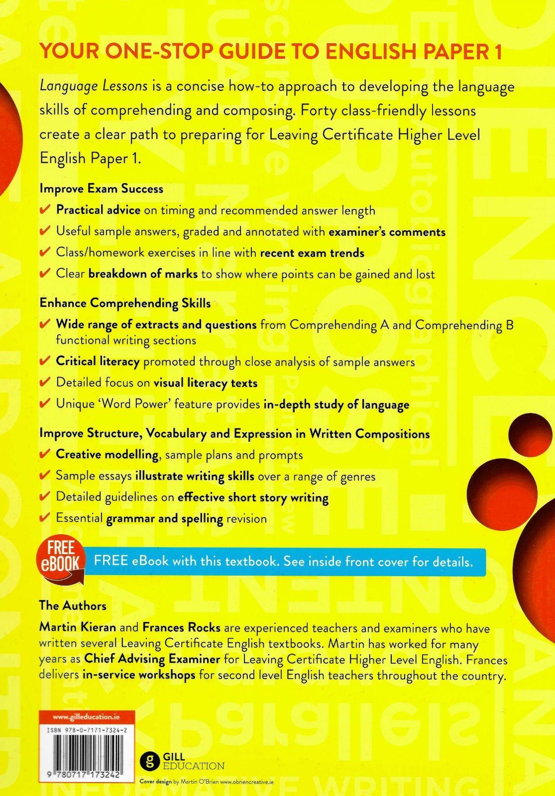 Language Lessons is a concise how-to approach to developing the language skills of comprehending and composing. Forty class-friendly lessons create a clear path to preparing for Leaving Cert English Paper 1.