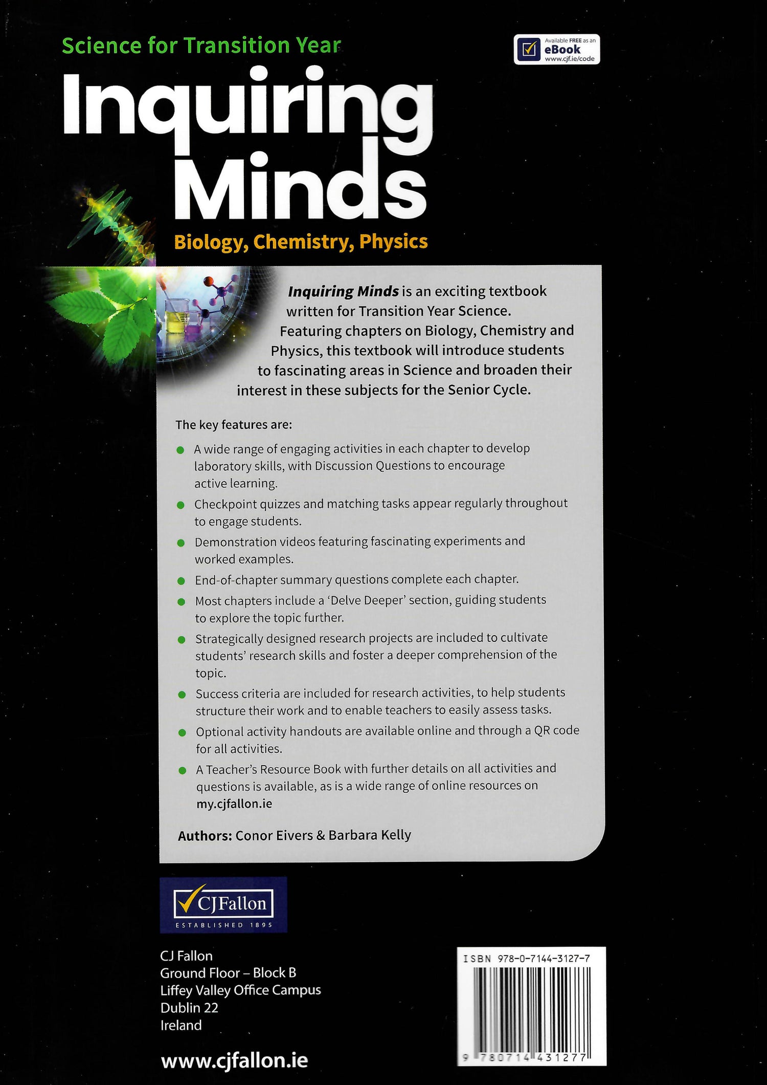 Inquiring Minds is an exciting textbook written for Transition Year Science. Featuring chapters on Biology, Chemistry and Physics, with a final chapter on Forensics involving all three areas, this textbook will introduce students to fascinating areas in Science and broaden their interest in these subjects for the Senior Cycle.