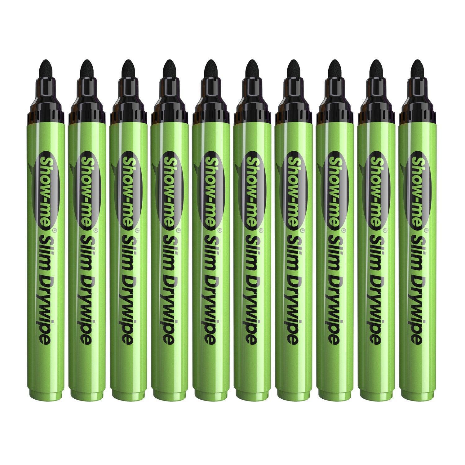 Show-me - Drywipe Markers - Medium Tip - Slim Barrel - Black - Box of 10