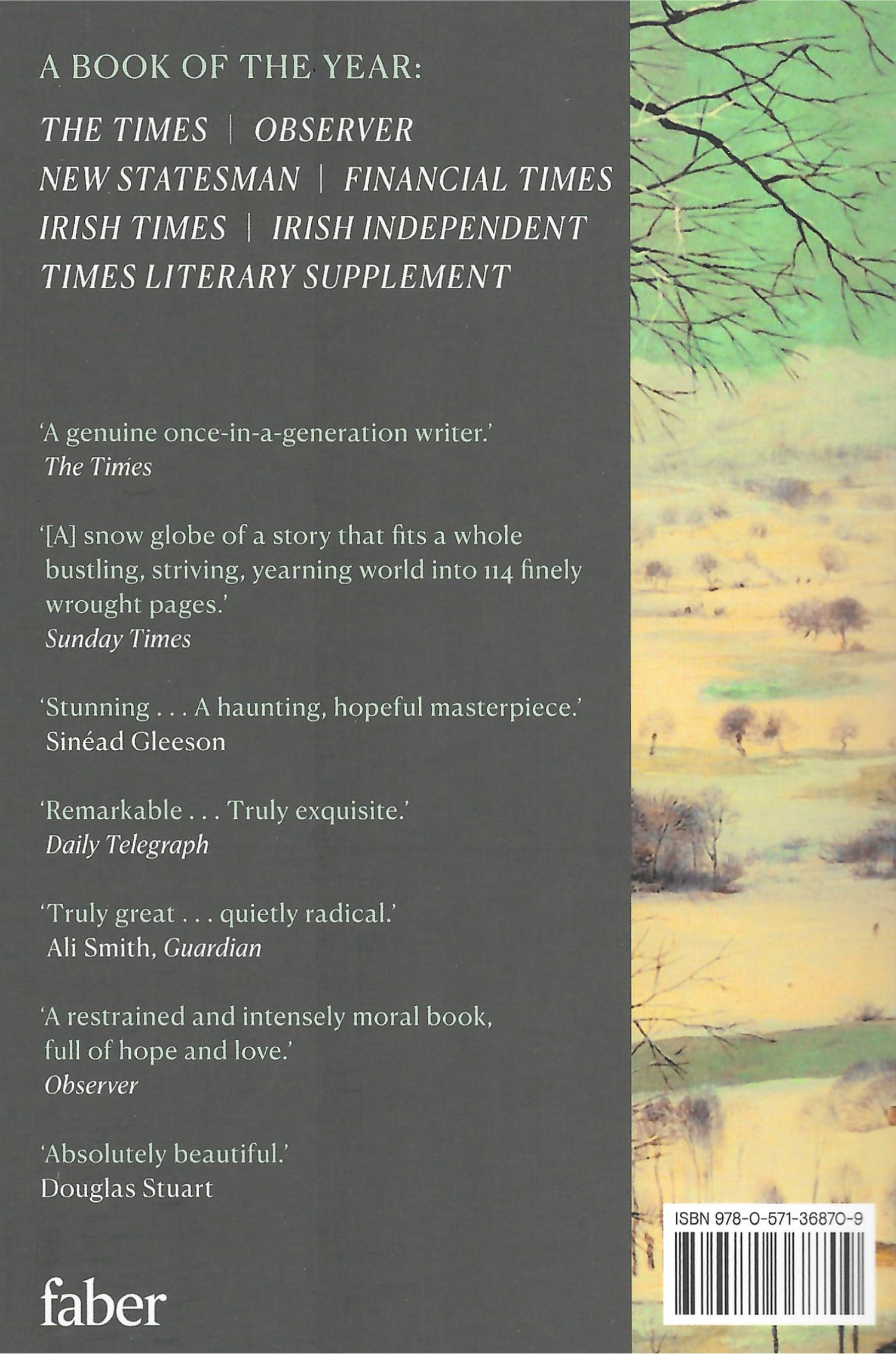 It is 1985, in an Irish town. During the weeks leading up to Christmas, Bill Furlong, a coal and timber merchant, faces into his busiest season. As he does the rounds, he feels the past rising up to meet him - and encounters the complicit silences of a people controlled by the Church.
