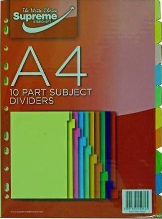 Supreme - 10 Part Subject Dividers is available to BACKORDER. If you order this item now, your full order will only ship when this item is received into stock.